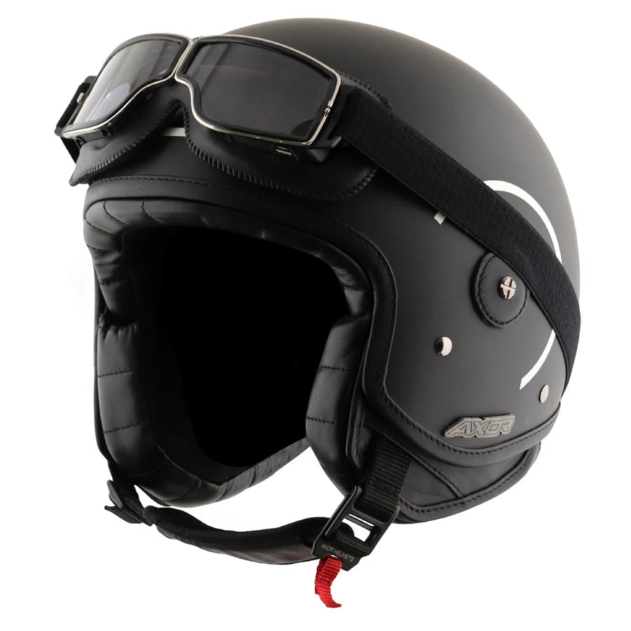 The classic open-faced helmet look is perfect, with the shape. In addition to this, the stylish goggles come with leather straps that give them a steampunk look and fit perfectly around one’s head, ensuring protection against dust, wind, and less-than-ideal weather conditions.