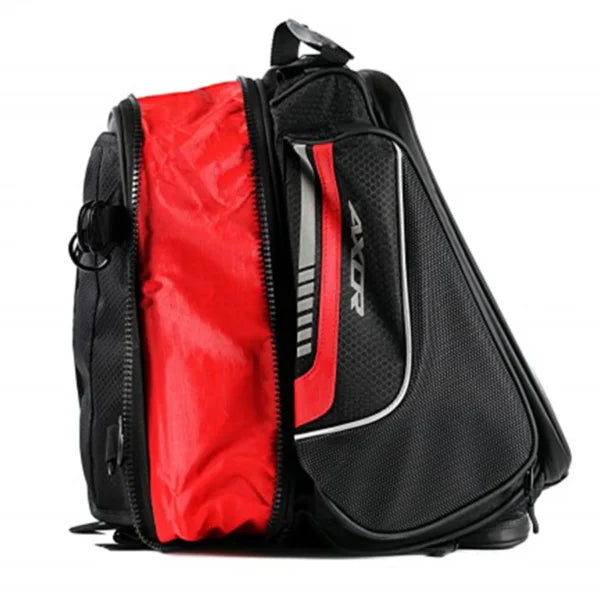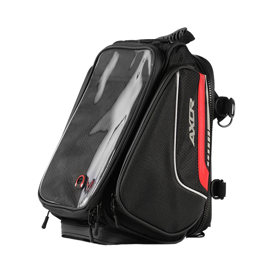 Carry what you need with ease thanks to this Motorcycle Tank Bag AXTB-2 by Axor. The bag takes the weight off your shoulders, which makes it more comfortable. Made of heavy-duty fabric with water-resistant backing, the tank bags provide maximum weather and abrasion protection. Its foam panels provide structure and offer added protection to stored items inside.