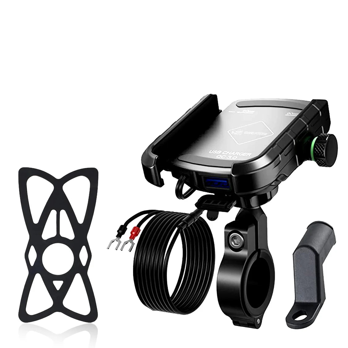 Jaw Grip Aluminium Mobile Holder with Charger - Silver